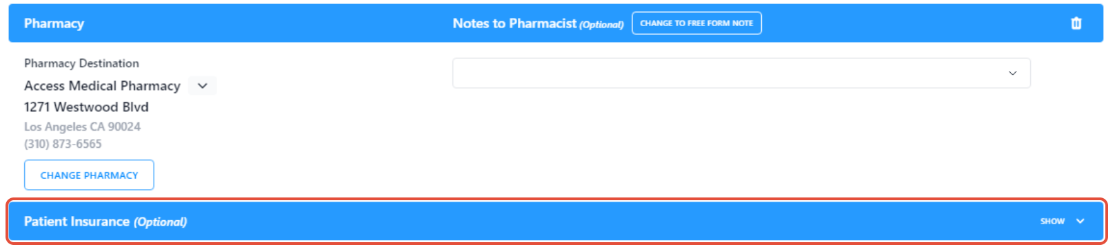 1. Click the button below under “Pharmacy” to expand the section if it is collapsed.