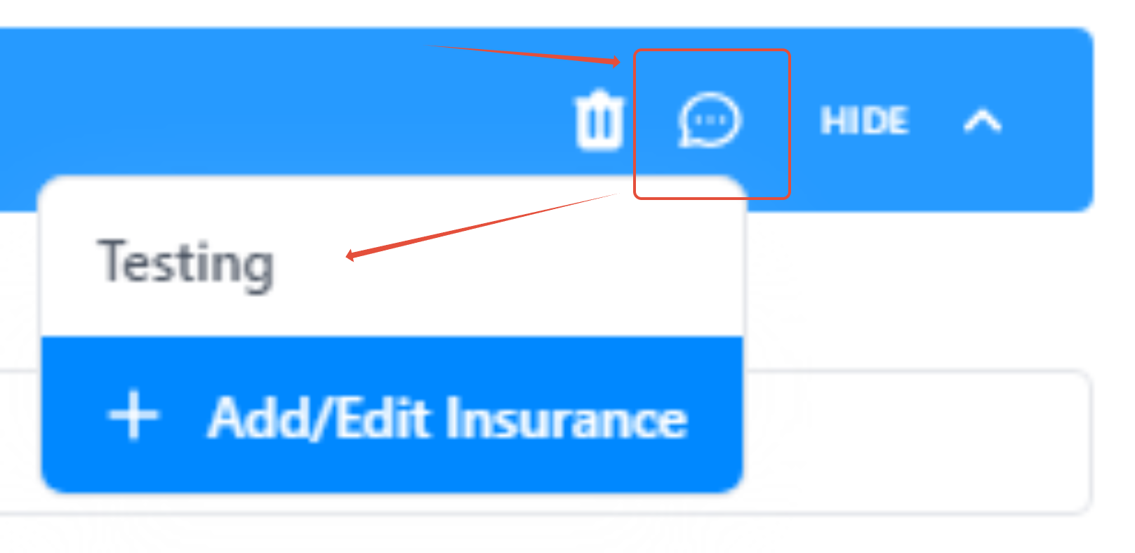 1. Click the icon circled below and select “Add New Insurance”.