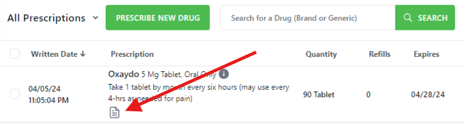 - If you check the box for "Diagnosis", the icon below will be displayed on any scripts with diagnoses attached.