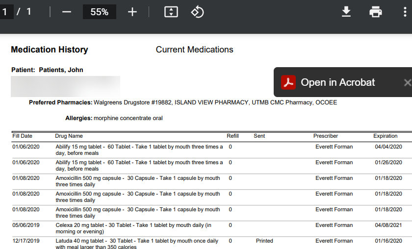 Print Current Meds Report: Includes medications that have a future expiration date. (Will not include medications that are past the expiration date.)