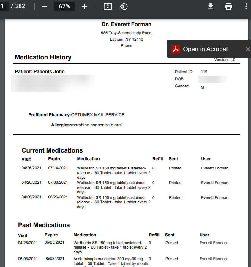 Print Downloaded Meds Report: Includes medications downloaded from the patient's history.
