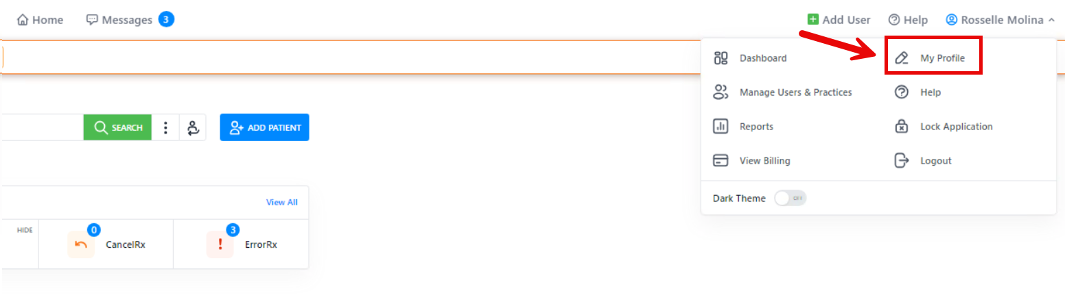 2. Click your name in the top right of ScriptSure.