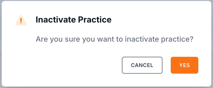 4. On the resulting popup choose to either inactivate the practice or cancel.