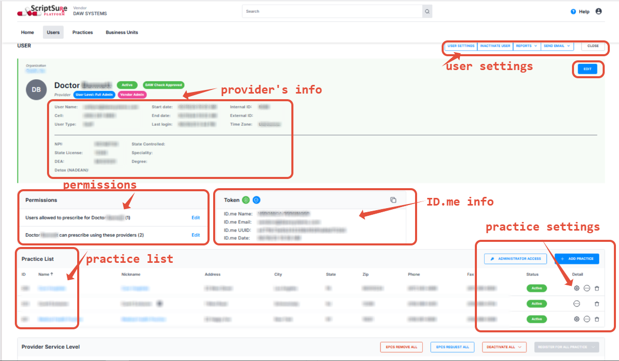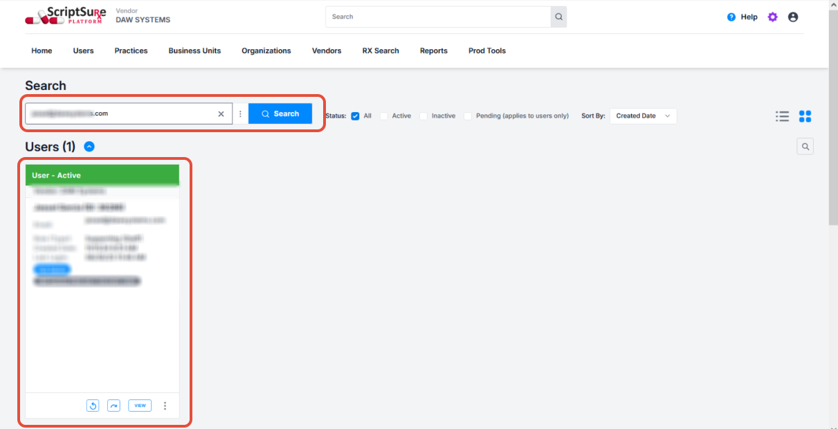 Once you've selected a result, you’ll be directed to the detailed view for that user, practice, or organization. From there, you can: