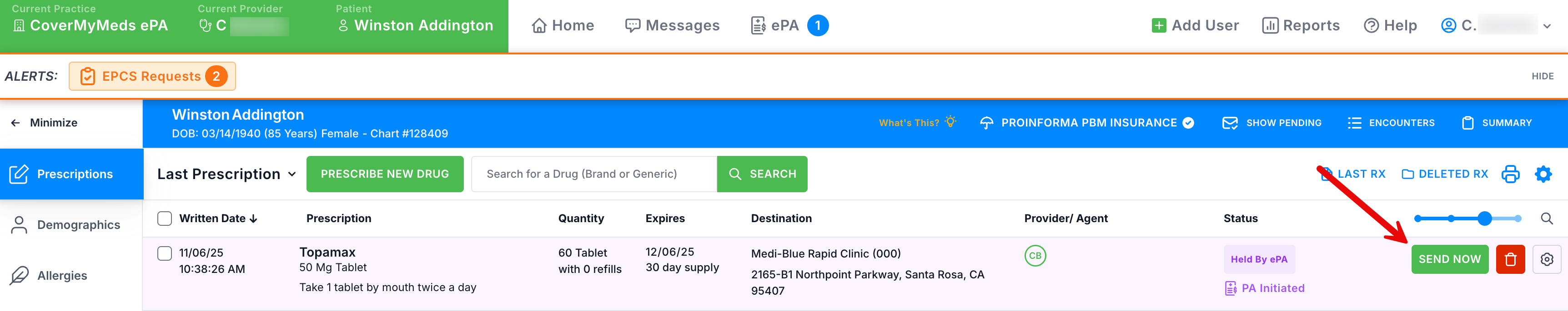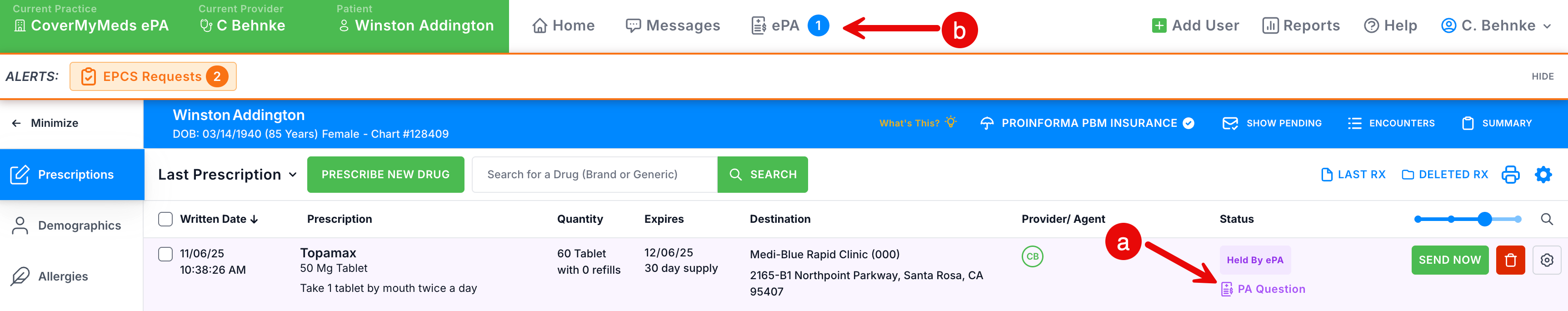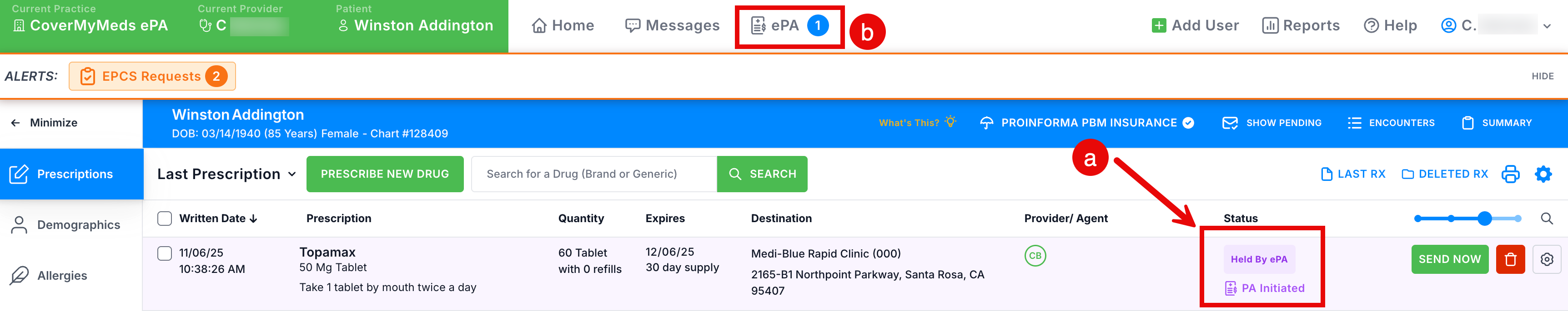 c. If a hold is put on the prescription, the Prescription Detail window will show "Will be held for ePA".