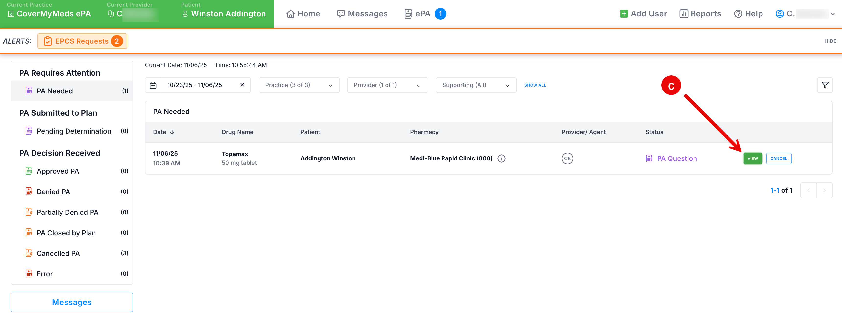 c. Click View on the ePA.