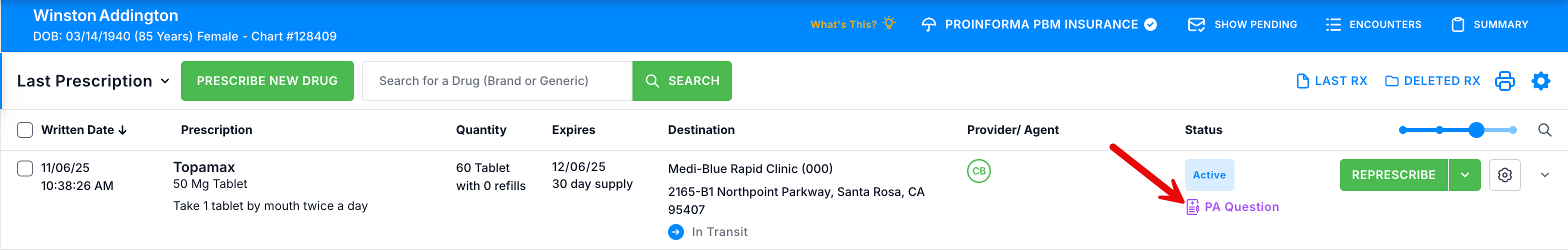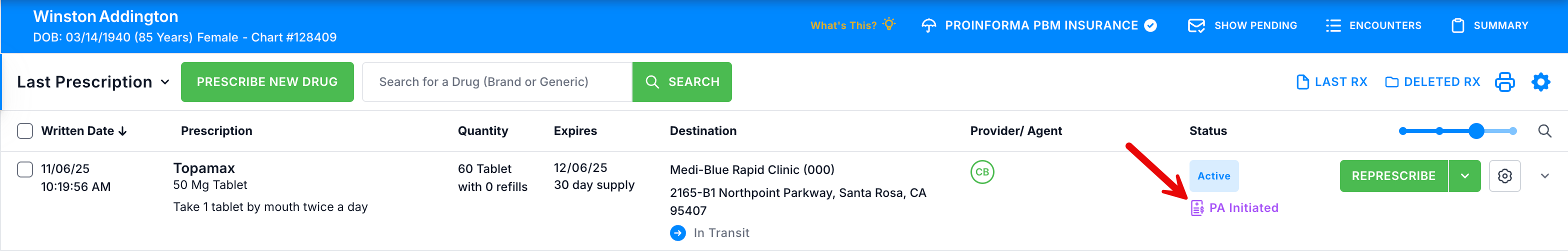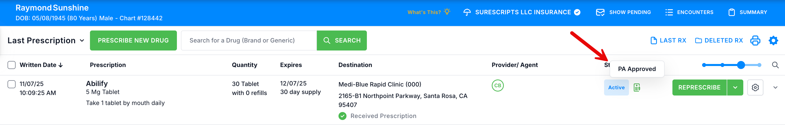 4. The Status column now displays PA Approved on the patient profile.
